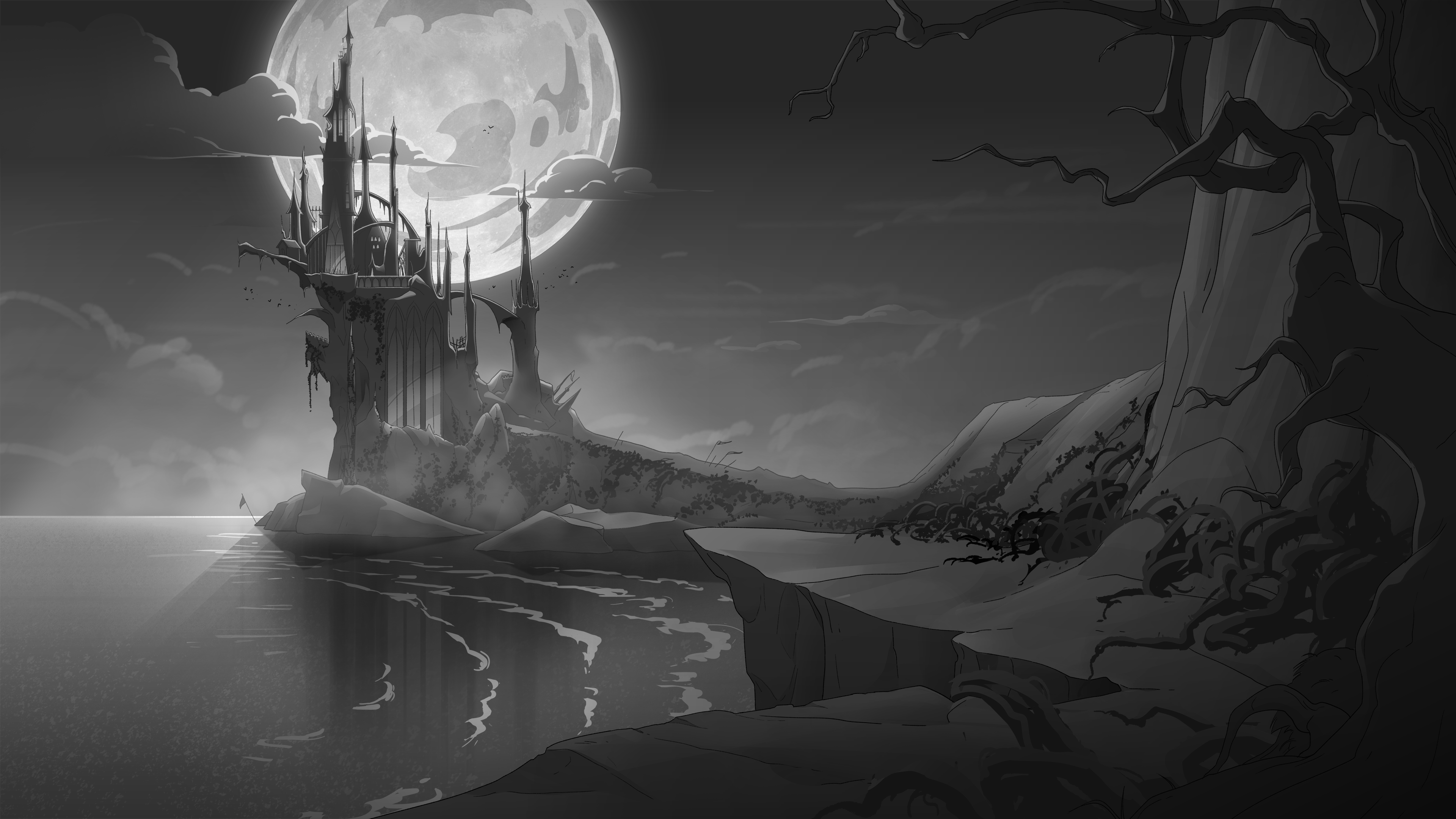 The Rankin-Bass film based on the beloved novel, The Last Unicorn, has always been a huge inspiration to myself as an artist and the kinds of stories I love. These BG designs explore the poignant, melancholic story in an adult-animation style with influences from anime and gothic-fantasy aesthetic.